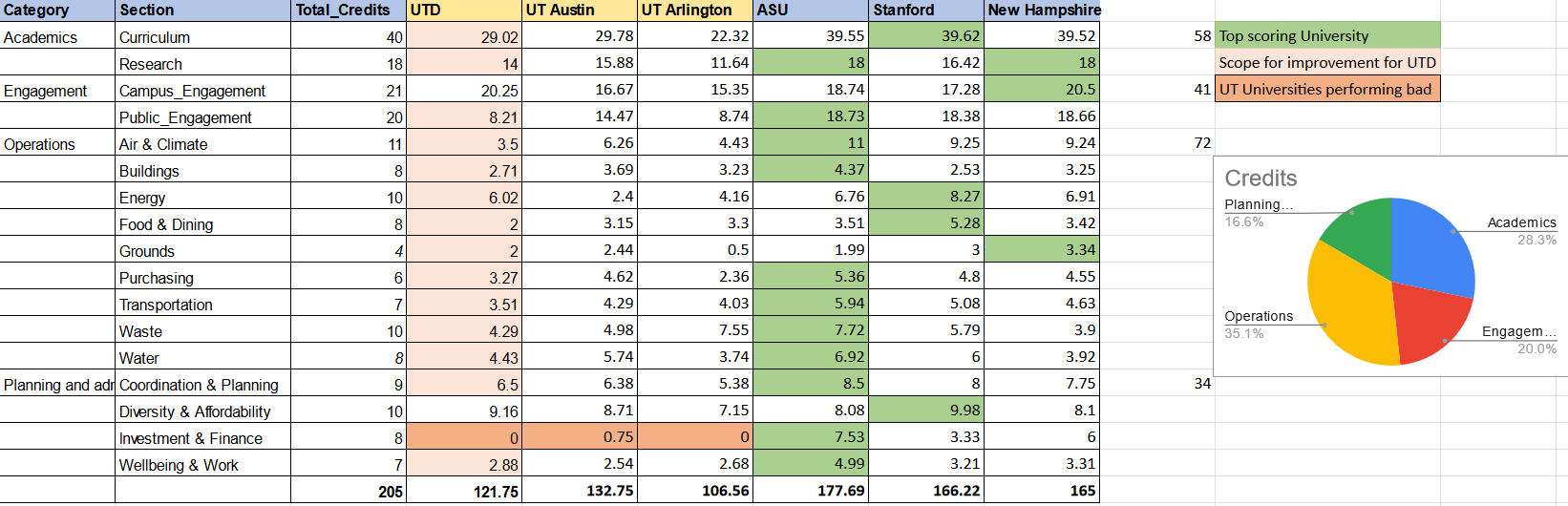 As part of our demonstration for universities, our primary focus was on addressing the academic credits associated with the STAR framework, specifically AC1, AC2,& AC9 which emphasizes sustainability-focused academic courses, learning outcomes and research focus in the University.