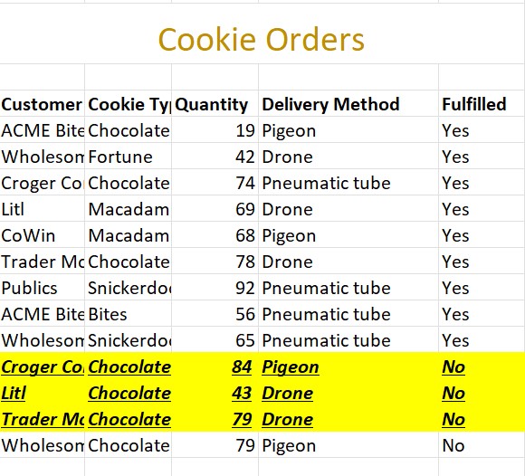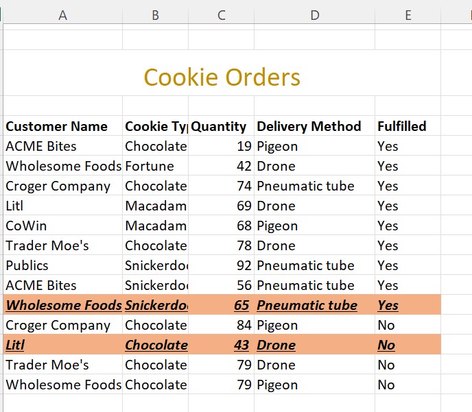 Formatting an order that is not fulfilled yet.