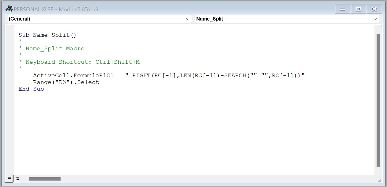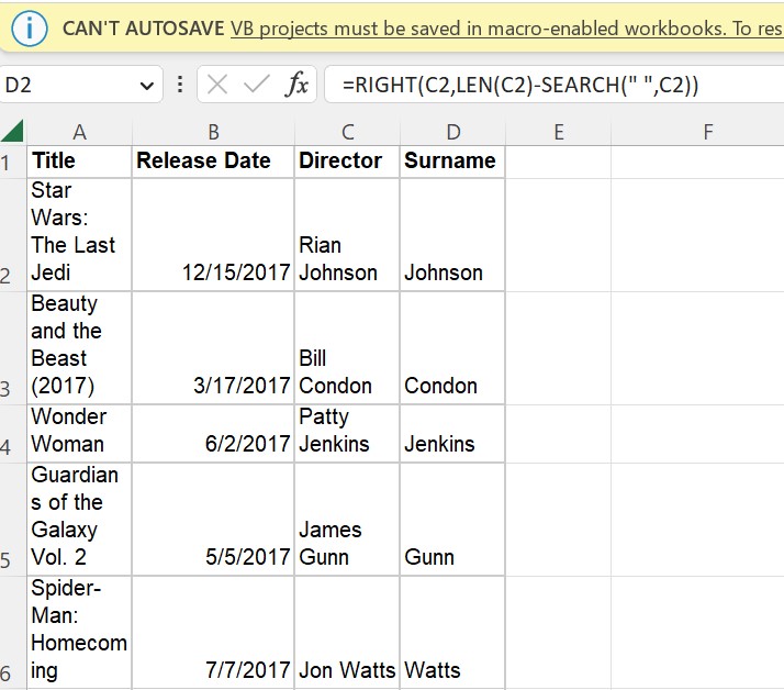So here, I've created a macro that splits up the name and returns the surname.